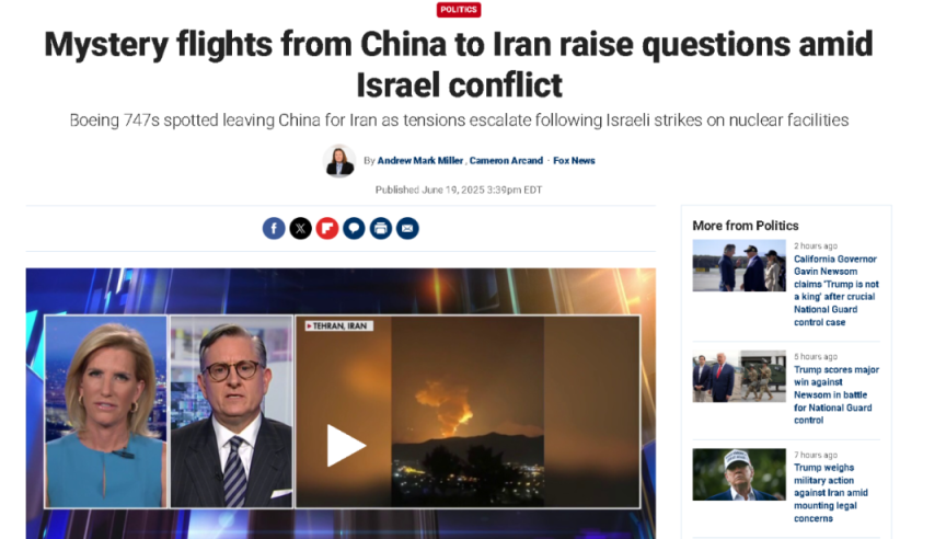 然而,面对这些非常清楚的情况,还有卢森堡那家航空公司官方的澄清,福克斯新闻网却在其报道中通过文字游戏,给人一种这些飞机属于中国的观感,该媒体还用了非常大的篇幅炒作说中国是伊朗的“盟友”。显然,这家美国右翼媒体是想在舆论上把一直呼吁停火的中国,卷入到伊朗和以色列的冲突中。